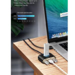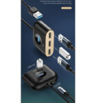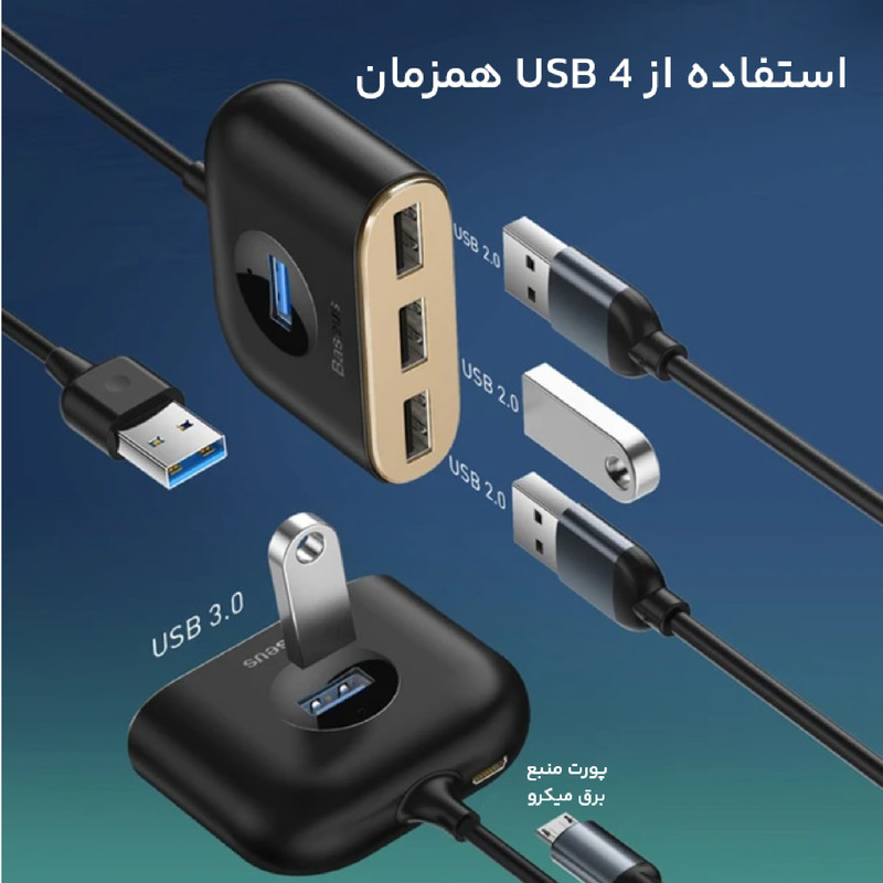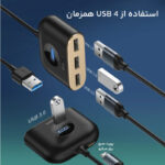 درگاه ورودی: USB درگاه خروجی: USB 2.0×3 / USB 3.0×1 / Micro USB سرعت انتقال: USB 3.0 – 5 Gbps USB 2.0 – 480Mbps دارای پورت MicroUSB برای اتصال شارژر و پشتیبانی ار 4 ترابایت هارد